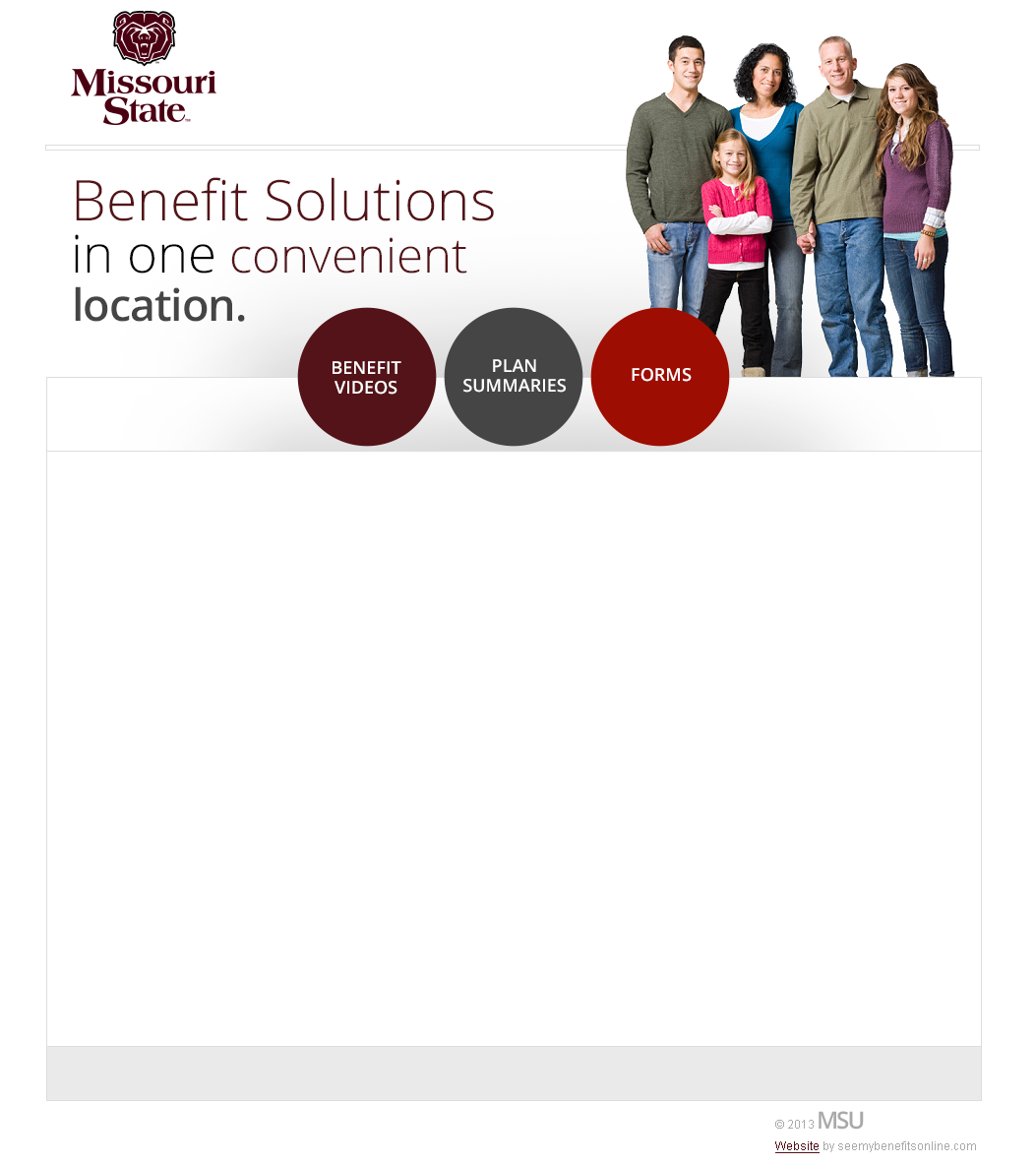 Welcome to our benefit website -- an information resource designed to help you learn more about the benefits we offer to you. Click around and you'll find a variety of benefit resources. There are videos and plan summaries that can help you get a clearer picture of what is available to you. There are also enrollment and services forms to assist you in any elections or plan changes that need to made. And check back often, because we're constantly adding new material. If you have a specific question or want more information, drop us an e-mail message, contact the office of Human Resources, or call Benefits Call Center at 877-282-0808 Monday-Friday 7:00am-4:00PM CST.