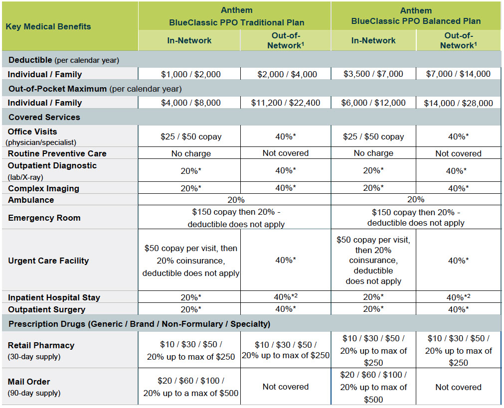 Both the BlueClassic PPO Traditional Plan and BlueClassic PPO Balanced Plan give you the freedom to seek care form the provider of your choice. However, you will maximize your benefits and reduce your out-of-pocket costs if you choose a provider who participates in the Anthem network. The calendar-year deductible must be met before certain services are covered.